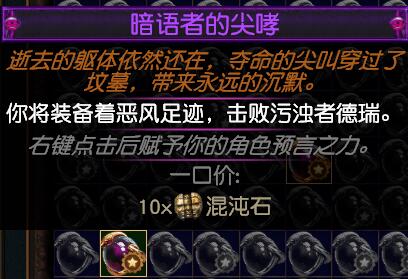 鞋子用+1诅咒鞋,是用以下预言升级来的