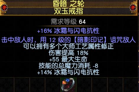 戒指绑定一个暗影印记诅咒的,配合鞋子+1额外诅咒,额外25%左右增伤,戒指上的附魔伤害提高比物理点伤要好(因为旋风斩的伤害效用只有55%)