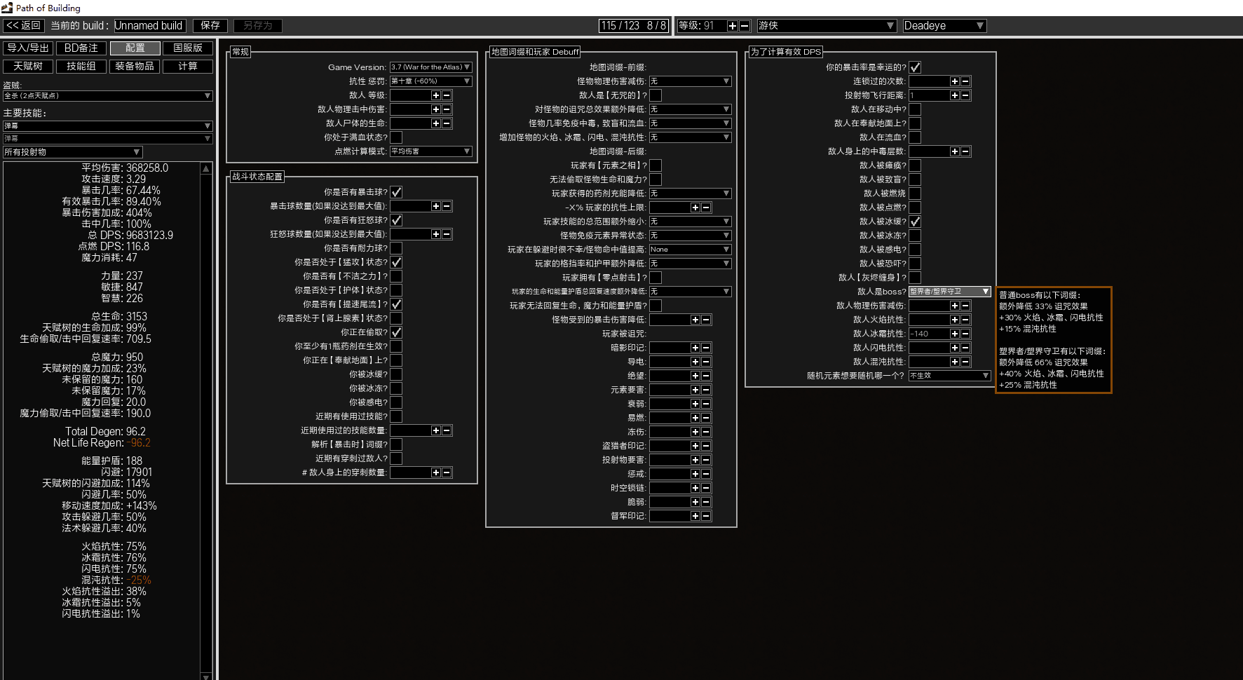 我的军团珠宝有60%投射物伤害,5%敏2词缀,10%非诅咒光环效果,10%免晕,击中5%致盲,5%攻击速度2词缀,4%生命,20%闪避,模拟貌似都没算进去