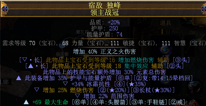 头盔:裂解底子头,增加燃烧伤害+集中效应必须。30%额外伤害视自己财力考虑,伤害提升明显