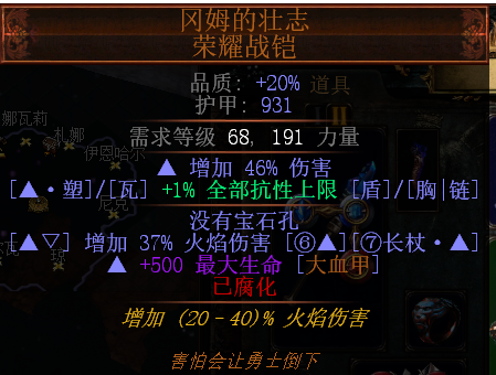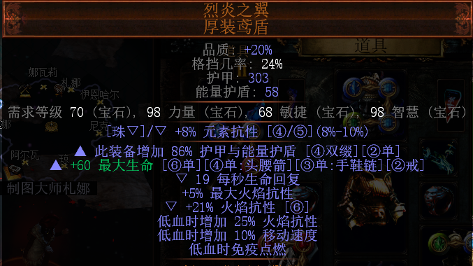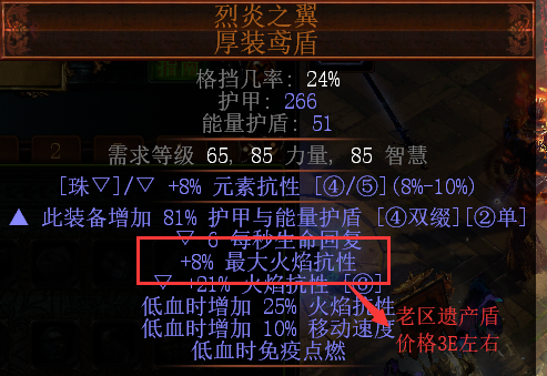 盾牌:T18用法格盾,刷图用正火盾,老区可以找到遗产盾+8%抗性上限