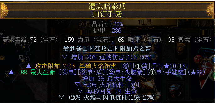手套:最大生命+抗性+秒回,附魔必须(光之X)