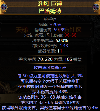 3. 长老底子的单手锤洗出每50力量加3%范围,获得大量的范围加成;