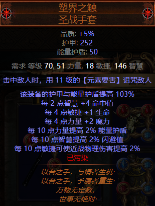 2. 手套:塑界之触,瓦出元素要害,提升很大,要100多C