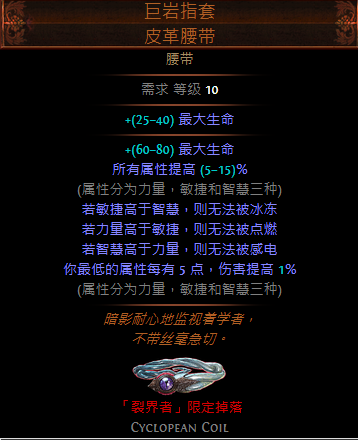 ----腰带:巨指岩套,也是千力常用装备,高配可以带长老的力量底腰带,洗出全属性百分比,如果还有力量词缀就好了。