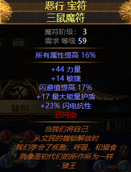 ----项链:百属链,高配可以带力量词缀的三鼠魔符,我是用魔符,还能补点抗性。