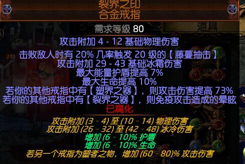 透着贫穷,买不起合金戒指,所以只能用裂解之印和一个20C淘的能补生命和点伤的星空低的戒指触发裂解之印的特效达成增伤。