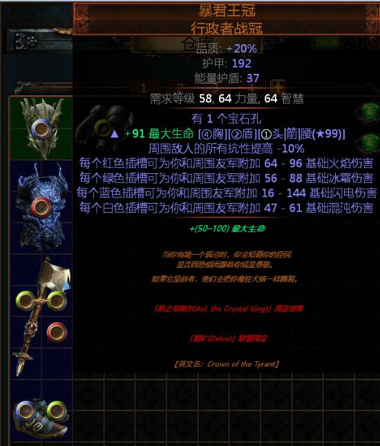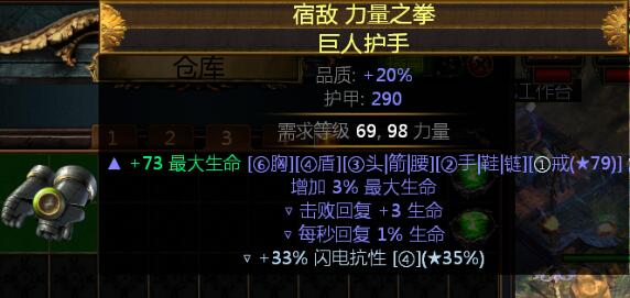 手套:提供守卫的秒回与生命,可用原始化石洗出秒回属性。