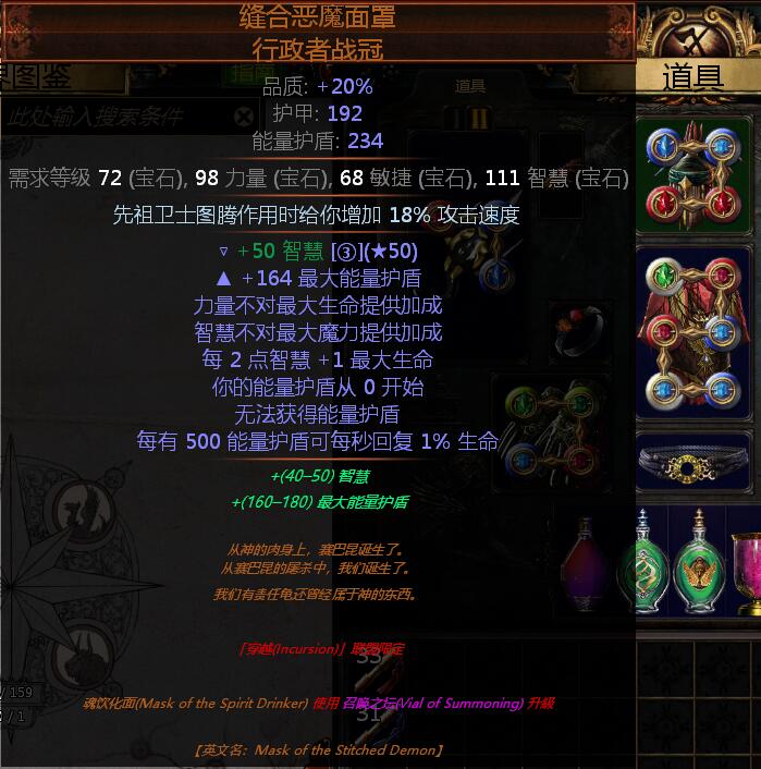 可以自己买个没有升级过的头盔(圣站之盔饮魂者面罩+召唤磨瓶)用神庙3级献祭房升级即可,如GIF图所示。