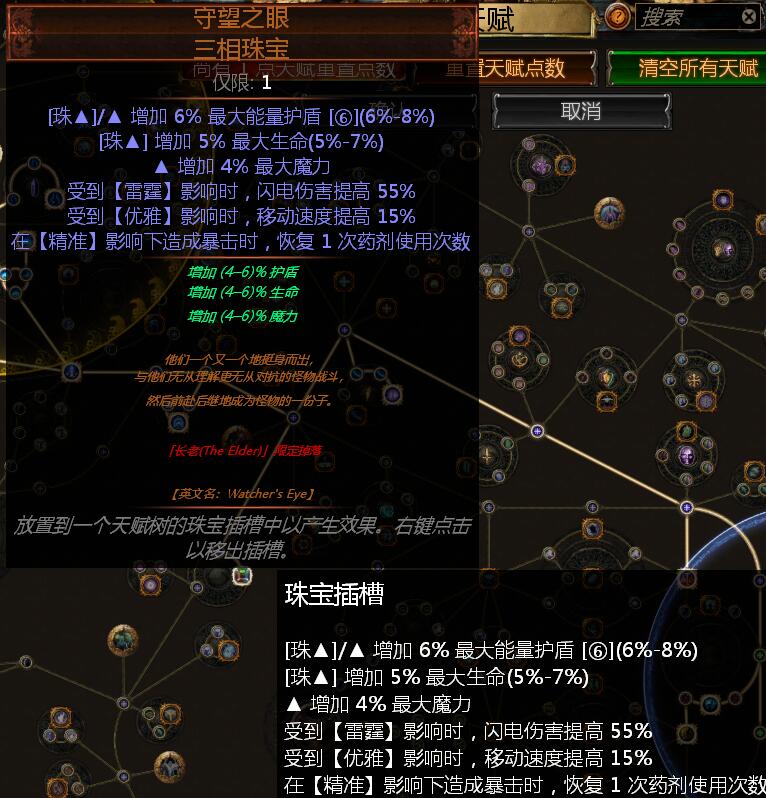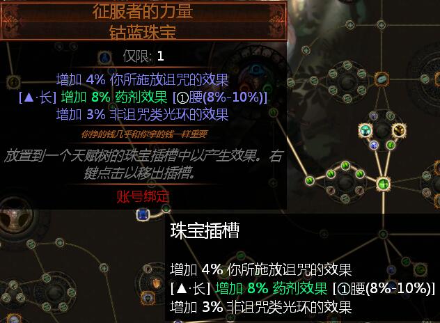 关于永恒珠宝太难复制了,我也是洗了几百个神圣才洗出移速跟药剂效果的属性,而且还是在必经天赋点上,也属于运气爆棚了。