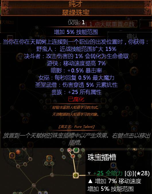 纯才珠宝增加7%移速跟25全能力,可瓦出技能范围词缀。