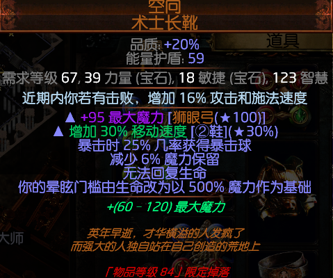1.空向鞋稳定获得暴击球,很不错,这样就有稳定的暴击率了,而且,减了6点魔力保留,这样我们就不用4级启蒙了,三级启蒙就够,现在4级启蒙都在5E左右,太贵了,3级的才一百C左右,手套不用法爆手的话,也不会增加魔力消耗,我们戒指上也就不用附魔减5点魔力消耗了,回魔完全够无限放。