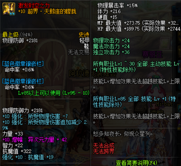 如果是力量职业爆到了智力职业的装备,也不红着急,直接跨界就可以了。跨界一件哈林传说只需要60个传说灵魂,自从改版以后,获得传说狗眼的方式还是比较简单的。每天打打异界,按照3个号算,一周起码获得十几个。改版以后的哈林强袭模式,一天也可以获得一两个传说狗眼。还有冒险团商店,也可以兑换传说狗眼,现在要存60个狗眼还是很简单的。