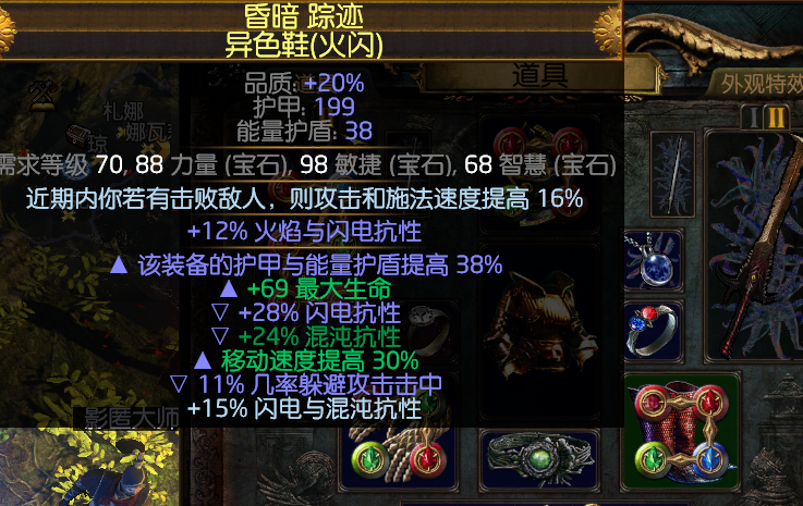 鞋子 推荐神庙底子躲避攻击或者法术击中的+移动速度复合 词缀名 叫 马塔特尔的