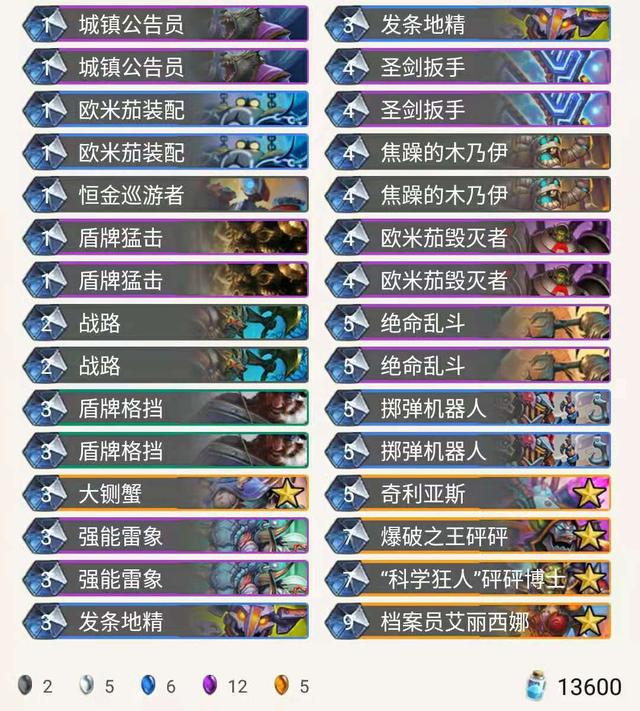 现在天梯里战士形态还是防战居多,这是个好处,对手在遇到战士的时候留牌的环节会有所大意。咱们这套卡组在前期中期可以给予对手不错的场面压力,可以在前中期磨去对手可观的血量,同时在对手卡组里埋入数量众多的炸弹。