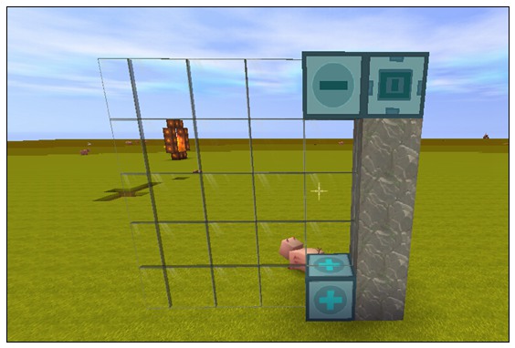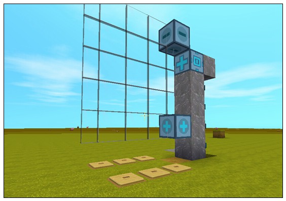 2.然后敲掉后面多余的辅助方块,在滑动方块的正面(+号的一面)放一个标记器(-),在最底下一层放一个标记器(+),中间用透明玻璃片填满。
