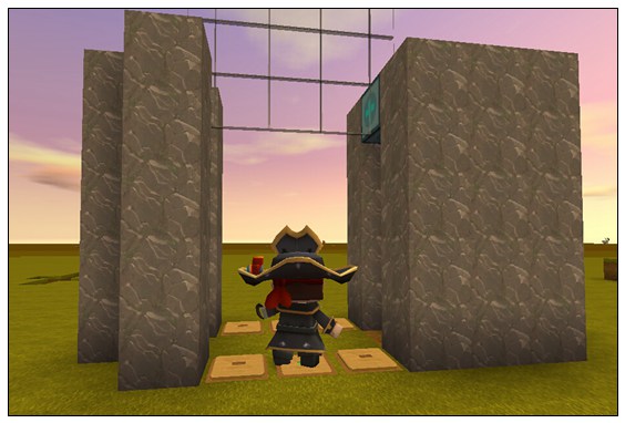 1.首先用岩石垫一个4格的高度(高度根据自己需求来),然后将滑动方块朝向一会儿要放门的方向(也就是+号朝向标记器),往后面做两个辅助方块,然后对着辅助方块放滑动方块,就能成功。