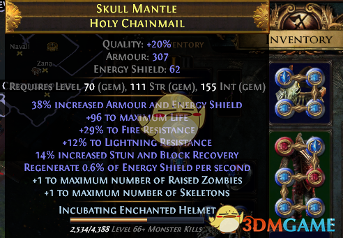 其他的装备全是黄装,补血量,补抗性,就不一一列出了,太占据篇幅了。对了,如果有需求的话,可以找一些加敏捷的装备。还有就是,因为抗性大量溢出,不妨多找一些带混沌抗的。