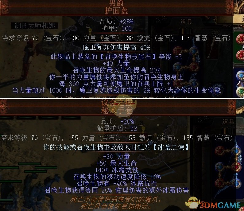 项链绑定均衡之符,戒子一定要有25%以上召唤生物速度 最大生命 力量 堆满抗性