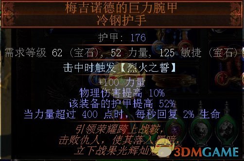 手套选这冷钢护手也不错 +100力量,2%秒回,只是抗性不好堆了