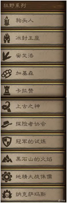 6个扩展:地精大战侏儒+冠军的试炼+上古之神的低语+龙争虎斗加基森+勇闯安戈洛+冰封王座的骑士+狗头人与地下世界,每个135张(810张)