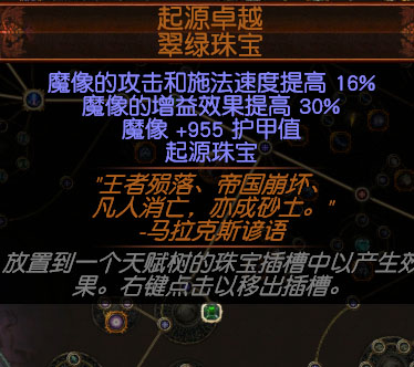 绑定珠宝,1聚魂,3起源卓越。天赋升华魔像使+天赋魔像指挥官,可带6魔像。