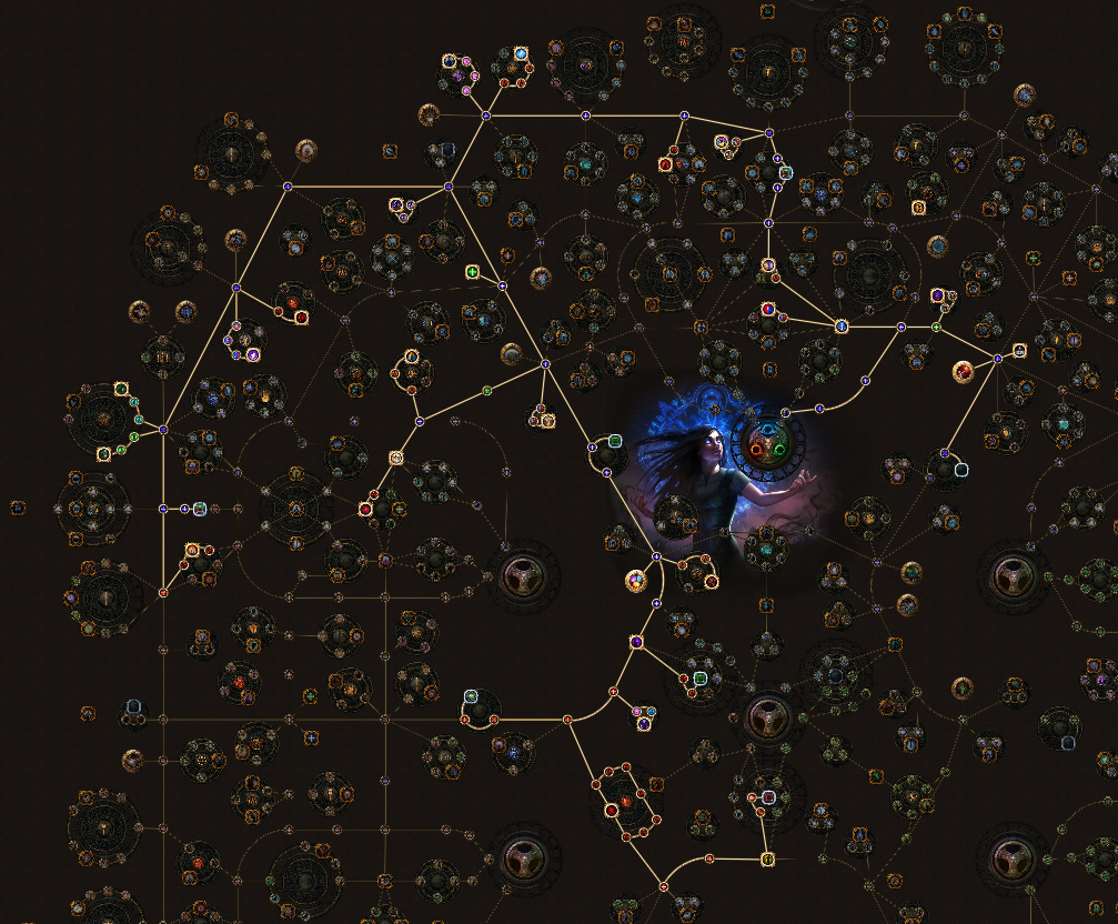 题外话:这个位置真的很适合放瓦尔的军团珠宝。过路点少,而且用一点天赋就可以白嫖一个中点,非常推荐。