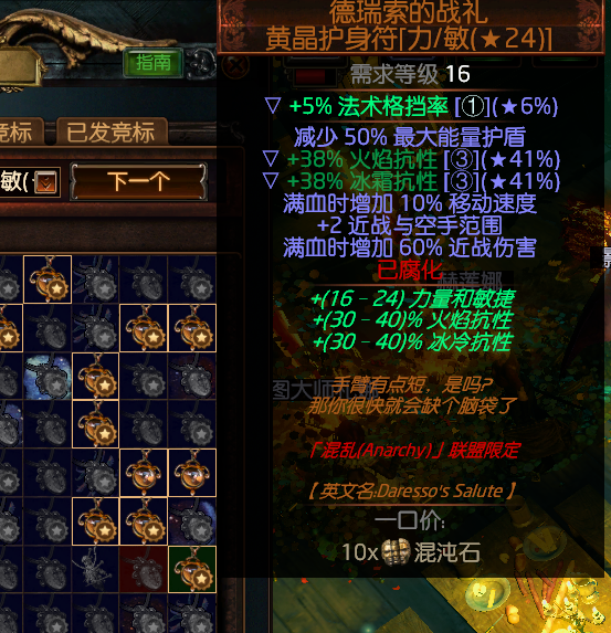 如果想不靠药水就满属性 这里最好带抗性 只有血量抗性的都是白菜价
