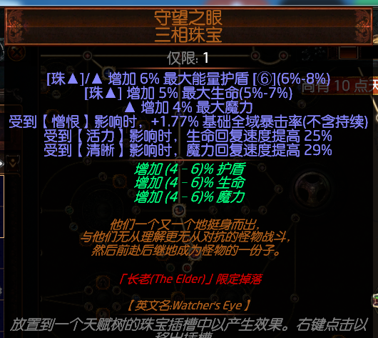 其他的都是生命 攻速 抗性 属性 之类的 如果想满抗的话 这里多找点抗性