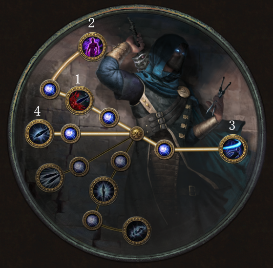 天赋点出完美苦痛的原因是,刺客并非是药侠,无法一直保持克拉里多之名药剂(自带完美苦痛点的暗金药剂)的药效,对于后期高端战斗,长时间的消耗,你会有很多时间是失去这个药剂效果,然而完美苦痛作为3.8重要的持续伤害来源,所以我选择了在天赋中点出这个点。