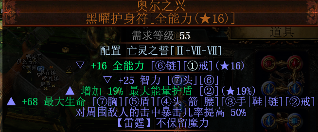 项链:雷霆无魔力保留,涂油是上面提到的亡灵之誓(给宝宝提供生存,驱刑者灵体本身较脆。)