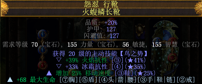 衣服地心召唤点产物,通货化石做不出。如果没有可以穿鸟衣鸟之力量有30%的双倍伤害几率。需要盯着BUFF,因为不稳定,收益比+1灵体要低。