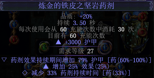 开瓦尔熔岩护盾的是时候需要先吃一口药,所以药水的词缀必须洗出