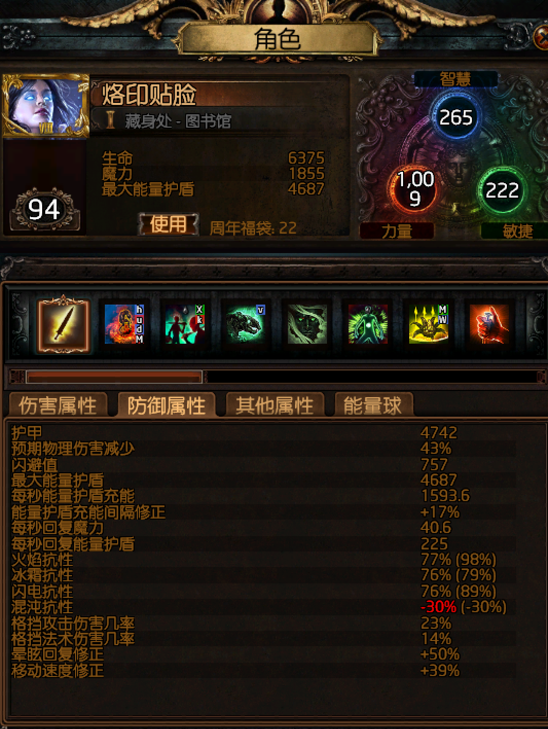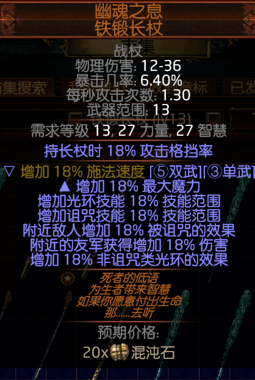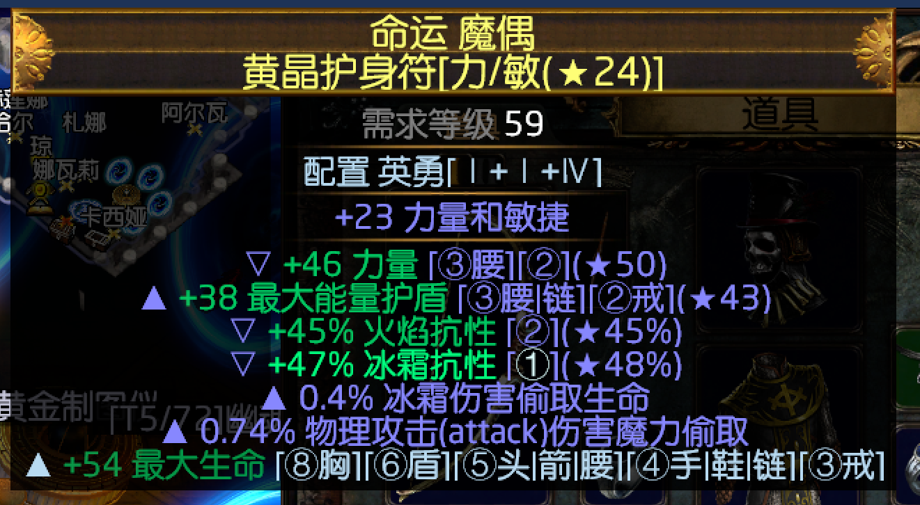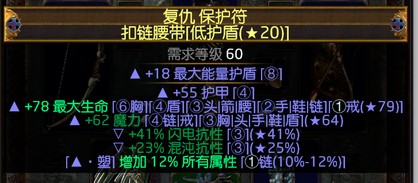 (火焰抗性77%冰霜抗性76%闪电抗性76%混沌抗性-30%)