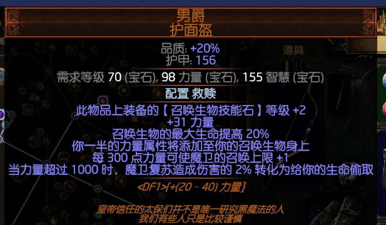 男爵 护面盔(技能连接:召唤腐化魔像+召唤灵体+幻化守卫+肉盾辅助)