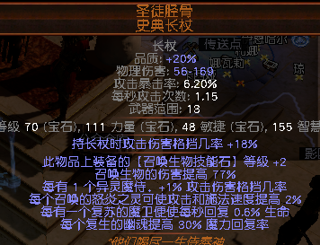 (选择这个武器说来也是缘分,本来之前我用的是逃亡女王-名贵巨剑,僵尸像疯狗一样跑的贼快贼快乐,结果后来打了几次八次缀的T15T16之后发现自己的僵尸容易死就是直接被伤害给灌死的那种,我就知道得换个给僵尸加等级的武器了,当然我第一个想到的肯定是瘫痪全技能加1多大师双手锤,僵尸能达到30级大僵尸,这样宝宝肯定就不会死了,于是我打开市集页搜索了下最便宜的成品18E还是18级瘫痪!WDNMD,这么贵,一群奸商!关闭市集页,告辞!打开wegame数据库-勾选召唤生物技能石选项,诶,阿伟,这什么大宝贝,我来康康!于是乎围绕这个装备,我们的铁王八蛋召唤就此诞生了,我目前1200力量,14个僵尸,14*0.6=8.4%的秒回还套用至能量护盾!再备注一下,这里是生命回复通过衣服变成了护盾回复,被攻击依然会回复,它不是能量护盾充能,充能需要有段时间不被攻击造成伤害才会开始充能,这里不过多解释了,提醒下防止混淆!在后面视频中你们可以看到我的护盾秒回有多么恐怖)