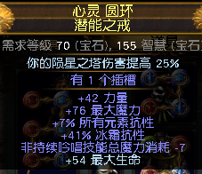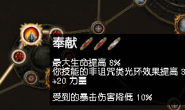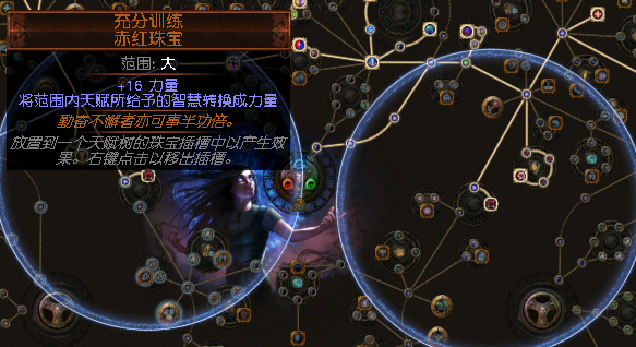 插在天赋盘最左边的珠宝孔里,同时每个被影响的小点会给我们提供力量,目前为我提供了44力量,所以真的很强,我这颗是拉凯尔塔编号10906,大家如果要买的话建议买最便宜的自己用神圣洗,虽然这个是个无底洞,我当时3E买的然后洗了大约9个神圣最后成了图中的效果,之前还有几次都是百分比力量的,说明百分比力量种类应该蛮多,感觉属性差不多了见好就收!