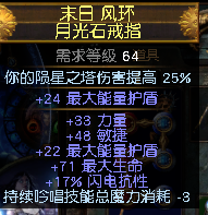 2:三项珠宝(找有受清晰影响时获得等同于魔力%额外的能量护盾这条词缀,这也是我上万盾的原因之一,其次再追求纪律每秒回复%这条词缀其他的纪律词缀对我们没啥用,再者还可以追求剩下的你所开的光环词缀,以我的光环为例,我想追求的就是清晰额外盾,元素净化额外混沌抗,可惜貌似一直没人出,唉,清晰额外盾已经很贵了,再有纪律每秒回复得上两位数,如果还有你开的光环词缀真的估计要上天,所以各位量力而行,我也只买得起个清晰额外护盾的三相)