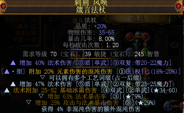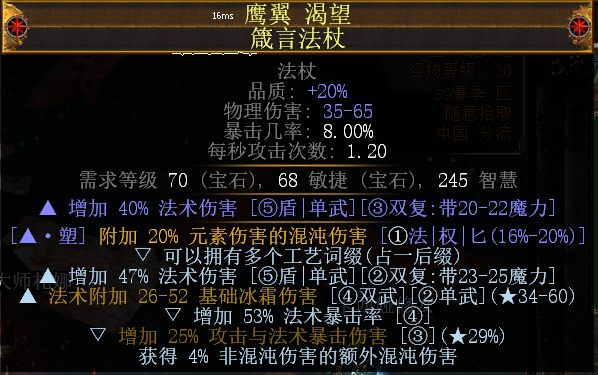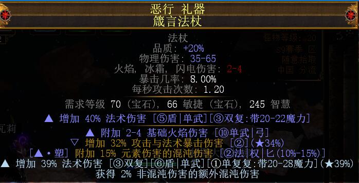 1、普通黄装:这是我过T18的时候用的,词缀就找法术伤害,冰冷伤害,暴击率/暴击伤害,附加XX元素伤害的混沌伤害。