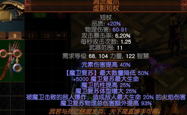 衣服为了就是死神光环,清图用的,防止召唤恶心的清图速度,光环配置怨毒,技能进阶(21腐化虚空&集中)、三项怨毒宝珠进阶、四级增幅进阶