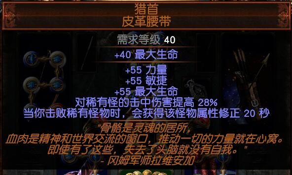 其二:猎首皮革腰带,高额速刷任何图,看偷取属性