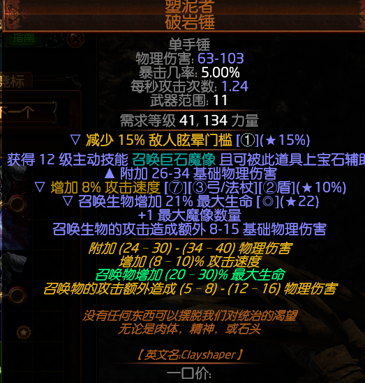 魔像信仰锤两个(塑泥者 破岩锤)(41级可用) 或者副手换成绿球盾也可以 天赋点灵能神盾就行