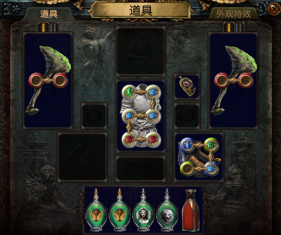 这里就是我用到的装备除了图中放装备的位置以外其余位置可以放任意黄装和传奇装