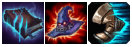 随后我们选择血手给予我们坦度加成并在生命值过低时提供护盾保护,板甲提供生命值和护甲加成并随着移动提升我们的移速,最后鞋子推荐布甲鞋提供移速并帮助我们吸收一定的伤害。