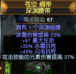 腰带:选择深渊腰带。元素伤,冰伤,生命,补抗