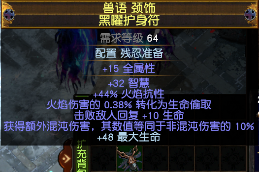 项链:裂界底子词缀选择:额外混沌伤、爆伤、生命、攻击技能元素伤害、补抗