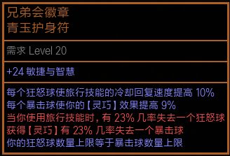关键是便宜,2者伤害相差不大,并且灵巧效果最大可以提升60%,跑速会比群魔殿更佳,我个人推荐低配高配都带这个