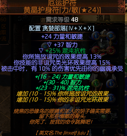 这个也不是核心,但是本BD伤害有他百分之10的功劳,还可以有击中全减伤百分之10,建议不要换,非诅咒最好15 其他属性随意