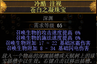 珠宝选择:苍白深渊珠宝攻击速度必备,剩下找点伤 越高越好(优先物理点伤,不要混沌点伤)