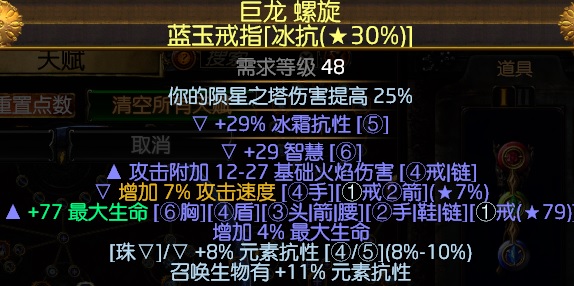 最好留有一个后缀,方便附魔召唤生物抗性和召唤生物移动速度(按我的天赋加法,任何灵体最低65全抗,这里戒指再附魔10抗性,即可达到75%全抗)